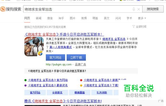 首先,打开浏览器搜索绝地求生全军出击,下载电脑版的绝地求生全军出击。