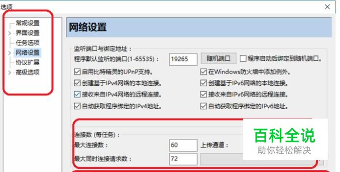 比特精灵还可以设置网络,网络设置里可以设置连接数和全局设置,如图所示。