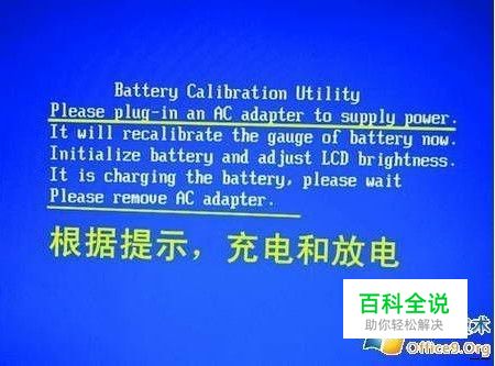 step 1: 开机,出现开机画面后按【F2】进入BIOS菜单;通过左右方向键,选择进入Power菜单。 step 2 :进入Power菜单,就能看到“Start BatteryCalibration”选项(图1),选中它并按回车键执行。 ●图1 选择“电池校正”程序 step 3 :这时屏幕会变成蓝色,并有英文提示,要求把笔记本的电源适配器插上给电池充电。等电池电量充满后,屏幕又提示用户断开电源适配器(图2)。之后笔记本开始持续对电池放电,直到电池电量耗尽。 ●图2 根据屏幕提示进行操作