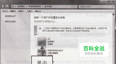 步骤2:打开“家长控制”窗口,在“用户”选项区中单击12用户图标,如下图所示。