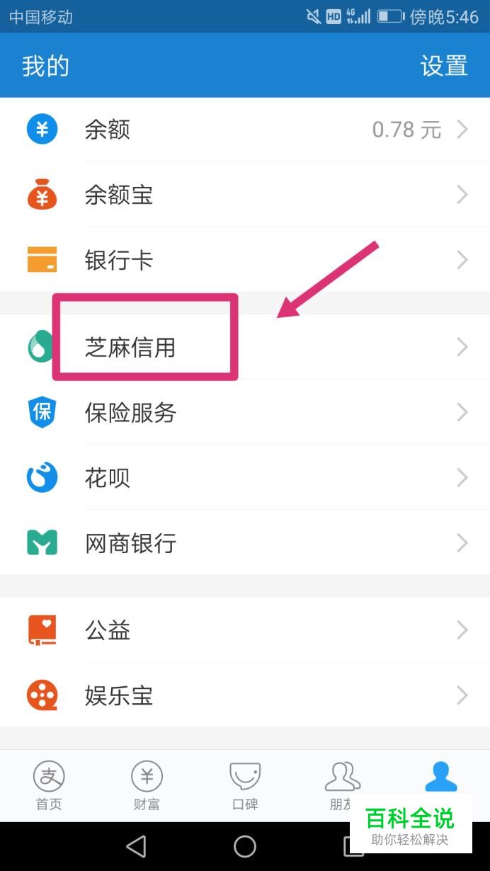 首先打开支付宝,点击我的,找到芝麻信用。