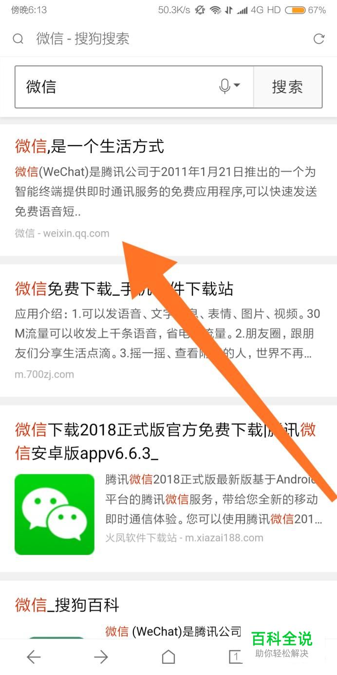 我们可以直接使用搜狗搜索“微信”,点击搜狗应用的“高速下载”即可。