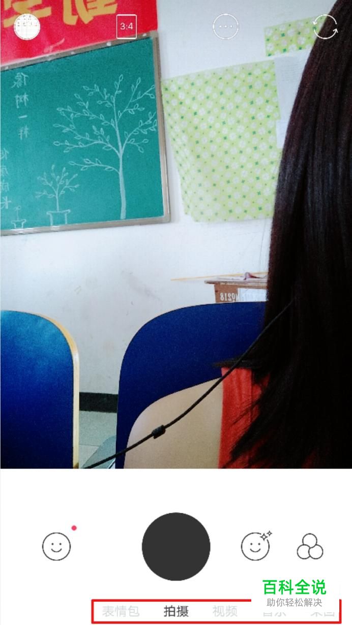 拍摄的左边是“表情包”,所以手指在屏幕上右滑进入表情包,就可以进行表情包制作了哦!