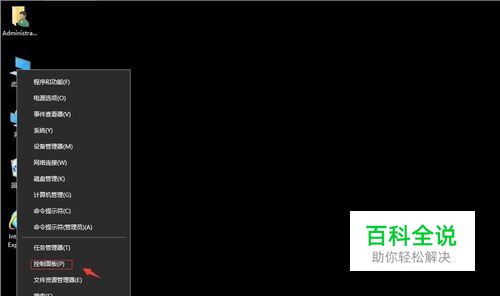 在win10系统桌面上,开始菜单。右键,控制面板。