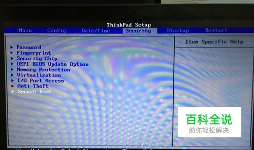 在“Security”中,找到“Secure Boot”打开(此项为安全启动的意思)。如图