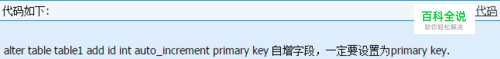 表创建完成后设置递增ID: alter table users add pkid int auto_increment primary key 注意:自增字段,一定要设置为primary key.