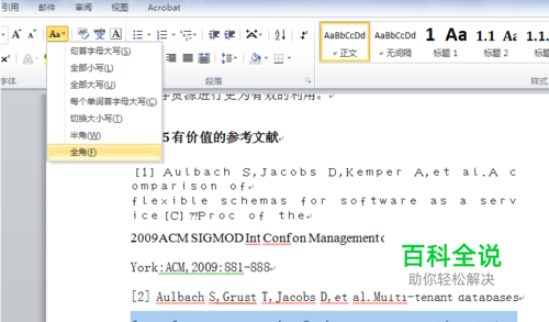 打开word,选中参考文献,选择word中菜单栏中的Aa,选择半角,就改变成了正常状态了。