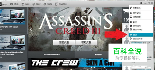 打开Uplay的游戏界面,点击上方的【设置】按钮,选择倒数第二个选项并点击,这样就进入离线模式登陆游戏了。