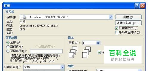 选择打印。打印机要选Linotronic 330-RIP 30 v52.3这个打印机。打印时一定要把打印到文件勾选。(如没有按装Linotronic 330-RIP 30 v52.3这人打印机。请先安装这个打印机。具体安装方法请到最下面的参考资料中查看《如何安装Linotronic 330-RIP 30 v52.3打印机》这篇文章。)完成后,会在电脑中生成文件,如图。