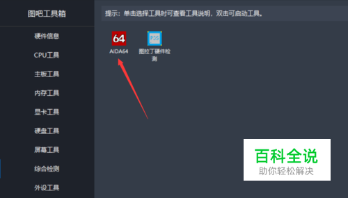 首先,我们进入图吧工具箱,找到综合检测工具AIDA64,双击即可直接进入。