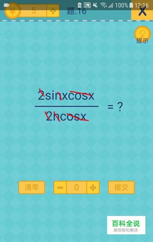 第16关,这关需要将式子化简,如图一,化简后得到的答案是“six”,就是6。