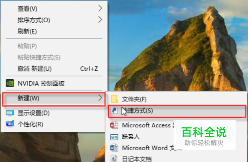 我们在桌面的空处,鼠标右击,弹出菜单选择“新建”,弹出下一级子菜单选择点击“快捷方式”。