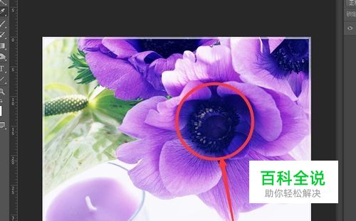 接着我们准备好素材,如图我觉得那朵花紫色花蕊那部分颜色比较好看,我想要那部分的颜色,我们的任务就是要把它取出来