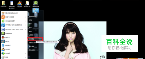 在“开始”菜单里找到“控制面板”,单击。如下图。