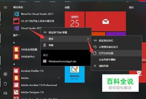 首先我们需要找到我们vs的安装目录,在左侧快速导航中找到vs2017,然后点击右键,找到更多,在更多中找到打开文件位置