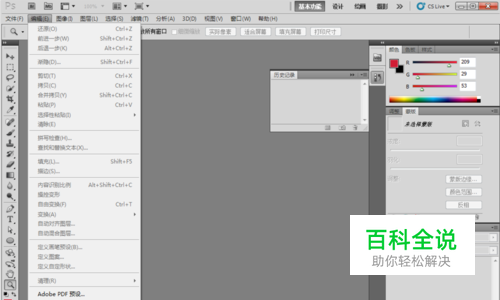 打开Photoshop软件,找到编辑菜单下的“键盘快捷键”,将打开一个对话框。