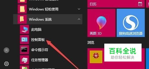 在Windows10系统桌面,依次点击“开始/Windows系统/控制面板”菜单项。