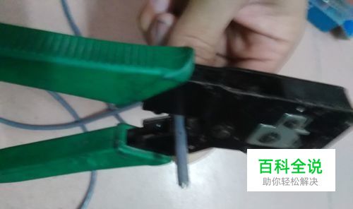 左手捏住8根网线不松手,然后将排好的网线放到压线钳切割刀口中,绝缘皮离刀口长度,大概1.3cm左右。然后合上手柄剪齐即可。