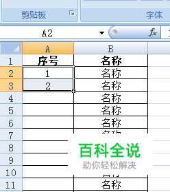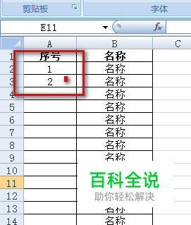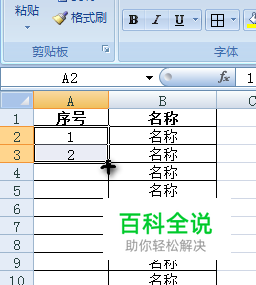 首先制作一个试验表格,在“序号”一列输入1、2