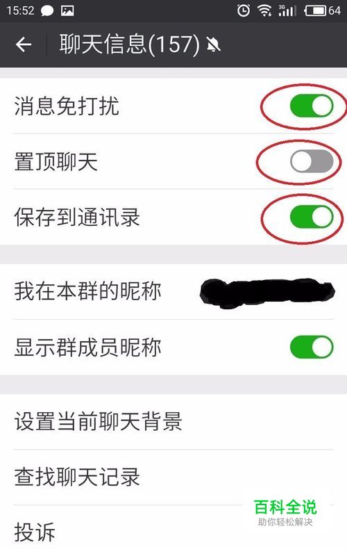 往上滑动,跳过成员,看到一连串群消息设置,按照需要设置即可,如图所示。