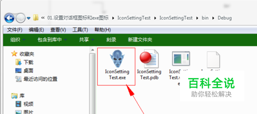 3.做完上面的操作之后,我们按【Ctrl+S】保存,并按F5进行调试。然后我们可以发现在项目目录下的bin\Debug目录生成的exe应用程序已经成功设置为我们自定义的图标。具体情况如下图所示:
