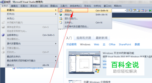 1. 打开VS2010,选中菜单栏中的【文件】—>【新建】—>【项目】,具体情况如下图所示: