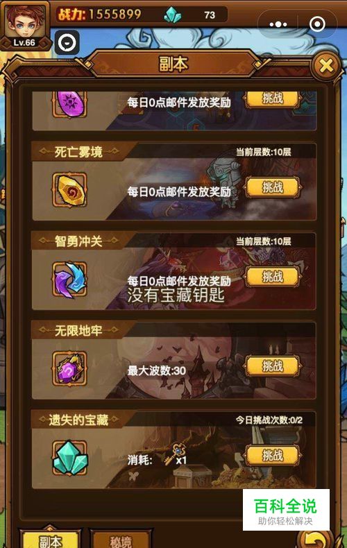 如图可以看到,参加遗失的宝藏副本,需要宝藏钥匙,每天可以参加两次