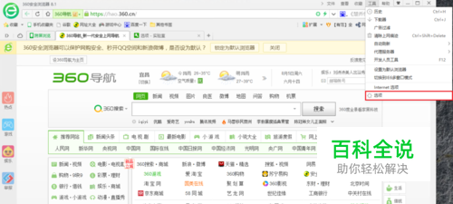 首先,打开360浏览器,点击网页右上方的“工具”,在下拉菜单中点击“选项”