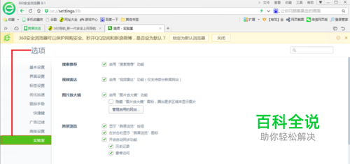 在选项界面中点击“实验室”,当你看到今日优选那一行时,若启用今日优选功能是被选中的,浏览器左下角会显示“今日优选”四个字。