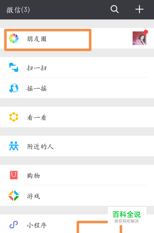 正常情况下,点击页面右上角的小相机标志发朋友圈。