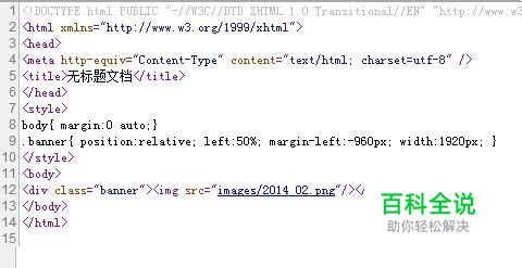 对于class的banner我们要经过如下定义{ position:relative; left:50%; margin-left:-960px; width:1920px; }margin-left的值就是图片大小的一半,left要定义个50%。如下定义: