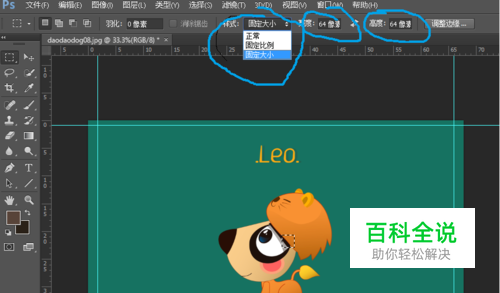 然后在工具栏的地方会出现一个样式,点击会有下拉框,我们选择固定大小,如果是固定比例的话也是可以的。