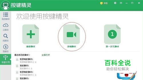 打开按键精灵,选择录制脚本,便会出现一个录制框。