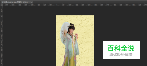 新建一个300*500的图层,打开宣纸和人物的素材放入进去,ctrl+t调整到合适的位置。