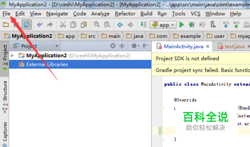 第一种方式,可以通过定时刷新项目中的文件,首先需要打开的是Android studio的软件,并在软件中加载项目,点击菜单中的file的选项。
