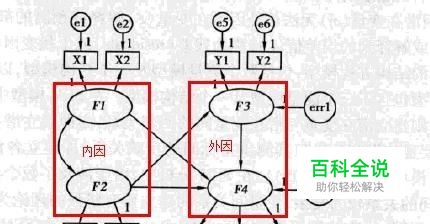 从图中区分内因潜变量和外因潜变量的方法是:外因潜变量只有向外的单向箭头,内因潜变量既有指向自己的单向箭头又有向外的单向箭头,注意,这里说的都是单向箭头。