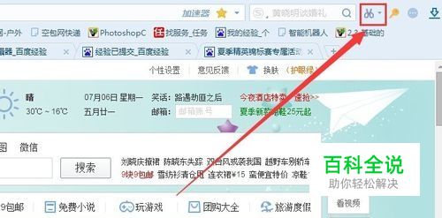打开搜狗浏览器,找到页面上的截图标志,就是页面左上方的一个类似剪刀的标记。