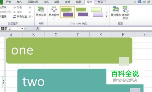 如果想换成另外一种形状,点击设计选项卡中的SmartArt样式功能区中的更改布局。