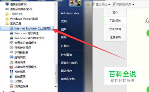 首先我们可以测试一下,在“开始”→所有程序→附件→系统工具→Internet explorer(无加载项),能长成运行,说明是加载项出了问题,为例一劳永逸,那我们就直接禁止加载项,永不使用,下面给大家讲怎么禁用加载项