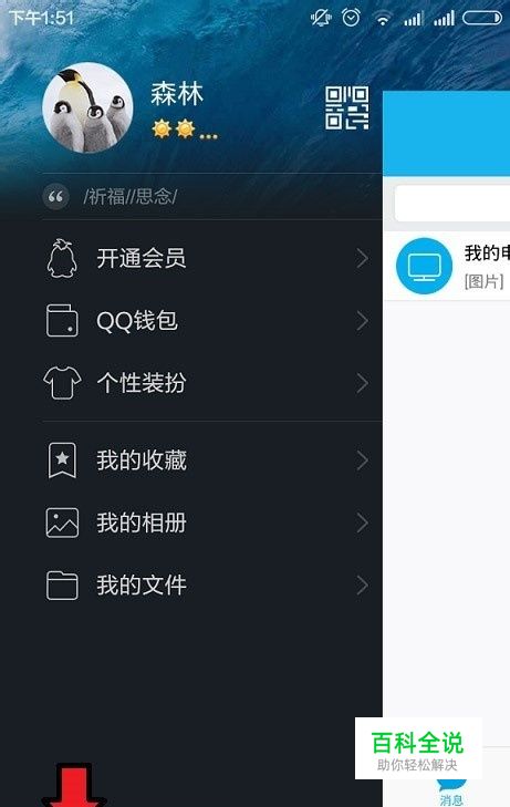 【找到手机qq设置】 打开手机qq,登陆后,出现如下第一图qq界面,用手指按住手机屏幕,向右滑动,出现如下第二图,左下角有一项“设置”,点击它。