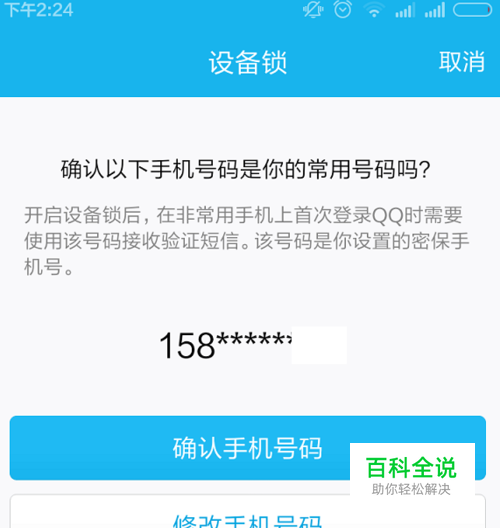 【确认\修改手机号】 完成上面步骤,出现设备锁的手机确认界面,如下图,根据需要可以确认或修改手机号。