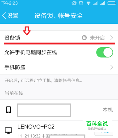【开启设备锁保护】 出现下面图像界面,现在状态是未开启,点击它。出现另一个图像界面,开启它。