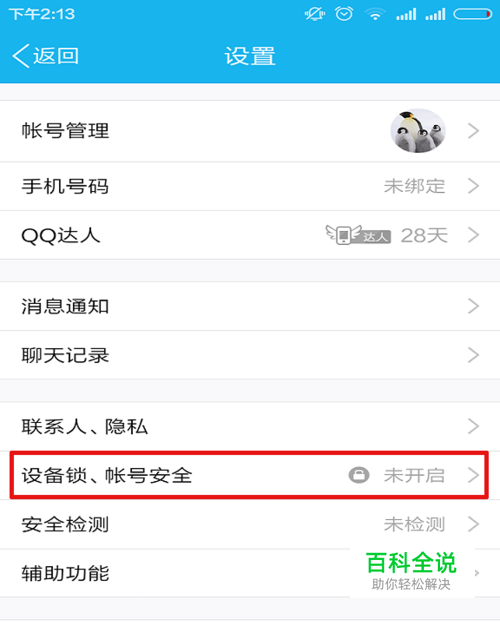 【找到设备锁 账号安全】 在出现的“设置”界面,中间有一项“找到设备锁 账号安全”,点击它。
