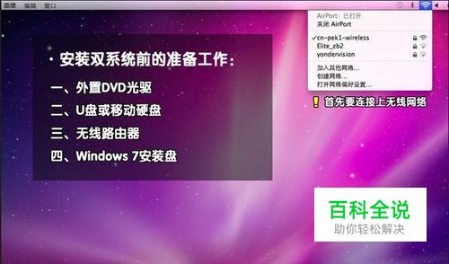 进入Mac OS操作系统,使用无线网络进行宽带链接。如下图所示: