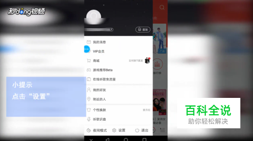 其次点击首页上方的菜单图标,在下一个界面中点击“设置”图标。