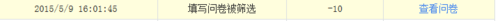 为什么我做完问卷,却提示:答卷被系统自动筛选,不赠送积分 ? 出现这种情况有3种原因: 第一:你中了陷阱。陷阱有很多种,比如让你选“符合”,湖南的省会是哪个,最近1个月你都干过什么(我一般选6个),这项请选择5.等等。 第二:答题时间过短。每个问卷都有时间的,做调查的都明白。10分钟的问卷,你5分钟就提交,能符合要求吗?不扣你,那扣谁?控制时间很重要。 第三:逻辑问题。有时问题有相反的,而你的回答都一样。这个需要特别注意,很多人都是因为这样被筛选的。 陷阱这么多,目的只有一个:认真答题!