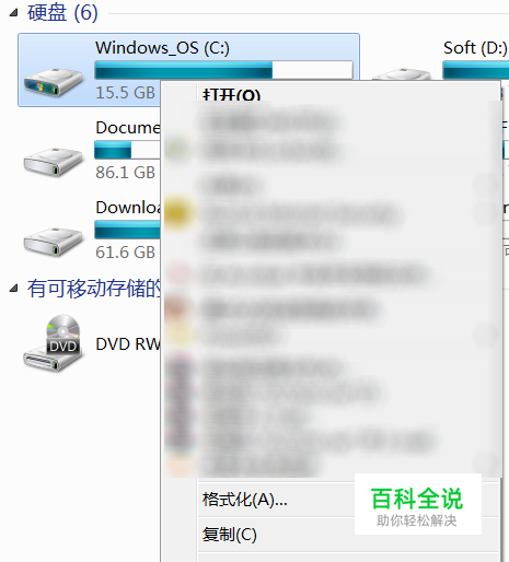在C盘上单击右键,选择“属性”