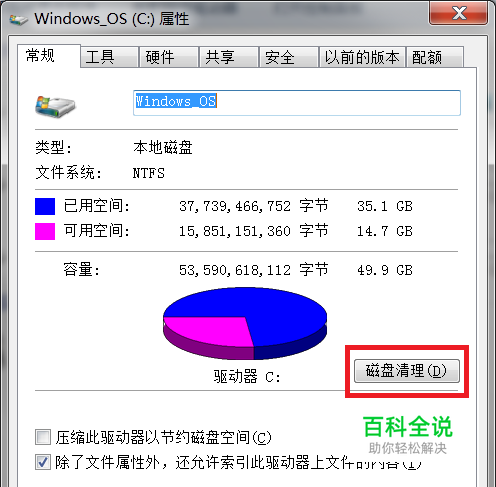 在弹出的属性窗口中,点击“磁盘清理”按钮
