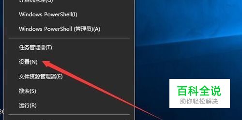 在Windows10桌面右键点击开始菜单按钮,在弹出的菜单中选择“设置”菜单项