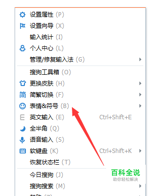 这里借助搜狗输入法给大家演示一下。首先,我们展开搜狗输入法选项,选择——【表情与符号】